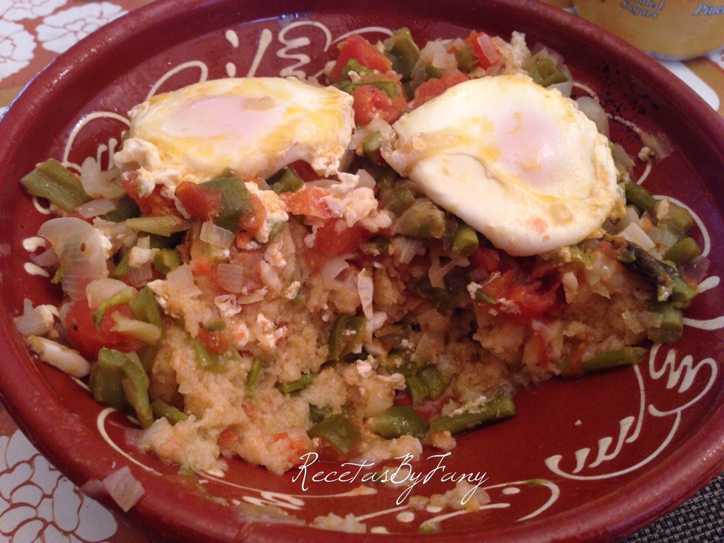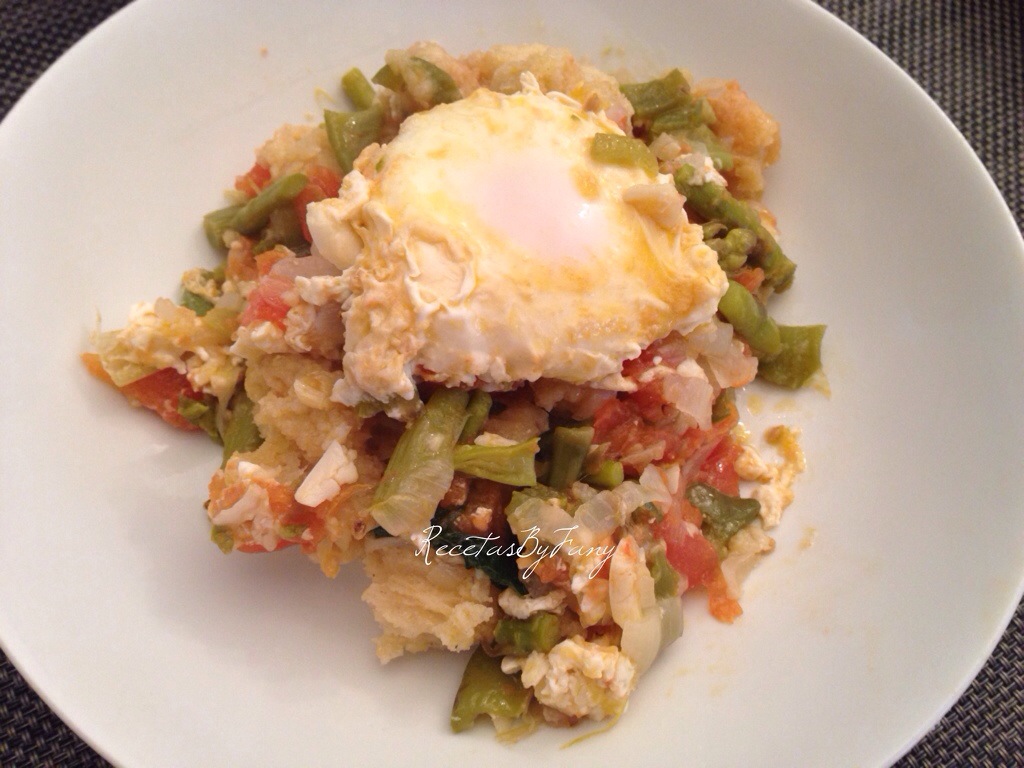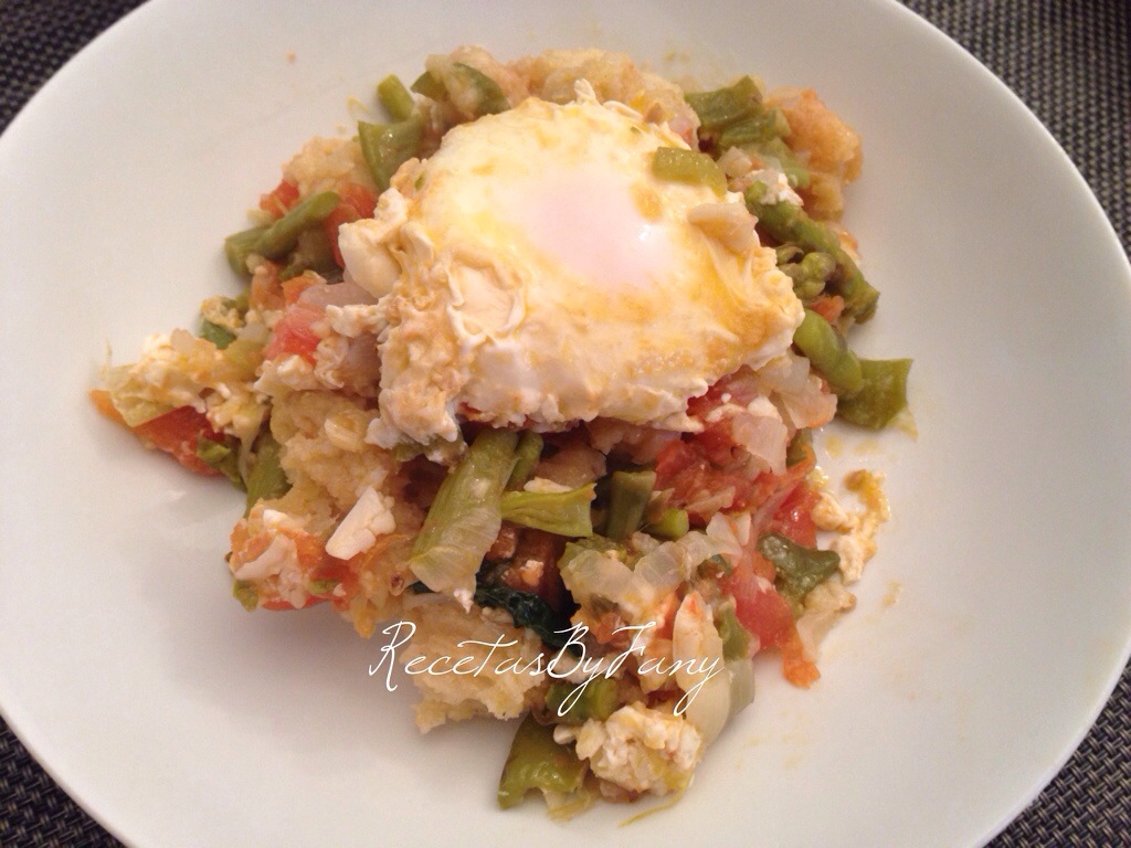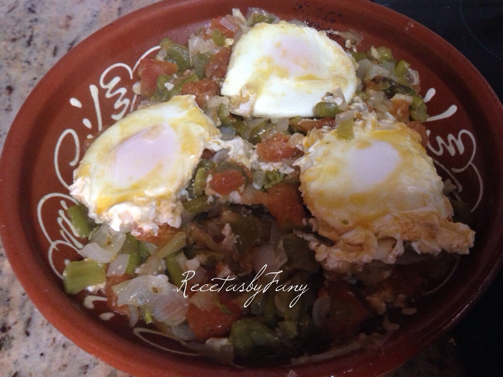 Finalmente añadimos un huevo por comensal (en mi caso añadí 3 huevos) y los colocamos encima del refrito – cocido, sin trocear, sólo los echamos encima, tapamos y dejamos que con el propio calor de la cazuela a fuego lento se hagan (unos 5 minutos).