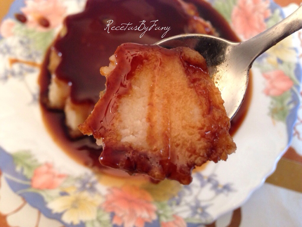 Echamos caramelo líquido en el molde que vayamos a usar y vertemos la mezcla anterior.